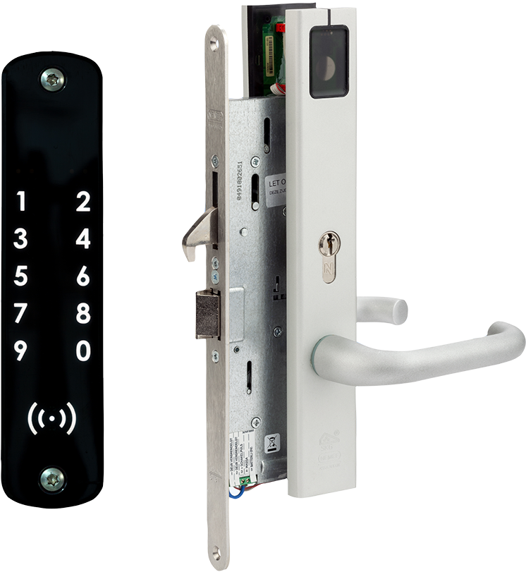 Complete SKG3 digitale oplossing voor uw voordeur, middels een driepunt sluiting. Eenvoudig te openen middels Keyfob (tag), Afstandsbediening of Smartphone. Geschikt voor toegang Zorgorganisaties en gemak diensten, te beheren door de bewoner.